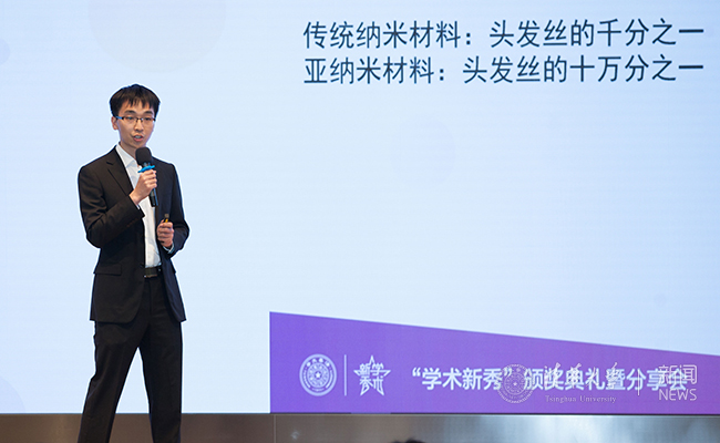 化学系2014级博士生倪兵介绍了自己在亚纳米材料的科研历程。亚纳米材料是头发丝的十万分之一,他通过不断尝试作出了纯度极高的特殊螺旋结构,并仔细探索了其生长机理。倪兵提出了一种特殊的无机单壁纳米管合成机理。在科研过程中,他强调了积累的重要性,不论是做实验还是读文献,积累都是取得科研成果的必要条件。
