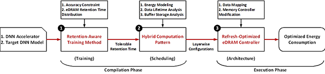 随着人工智能应用中神经网络规模的不断增大,计算芯片的大量片外访存会造成巨大的系统能耗,因此存储优化是人工智能计算芯片设计中必须解决的一个核心问题。可重构研究团队提出一种面向神经网络的新型加速框架:数据生存时间感知的神经网络加速框架(RANA)。RANA框架采用了三个层次的优化技术:数据生存时间感知的训练方法,混合计算模式和支持刷新优化的增强动态随机存取存储器(eDRAM)存储器,分别从训练、调度和架构三个层面优化整体系统能耗。实验结果显示,RANA框架可以消除99.7%的eDRAM刷新能耗开销,而性能和精度损失可以忽略不计。相比于传统的采用SRAM的人工智能计算芯片,使用RANA框架的基于eDRAM的计算芯片在面积开销相同的情况下可以减少41.7%的片外访存和66.2%的系统能耗,使人工智能系统的能量效率获得大幅提高。
