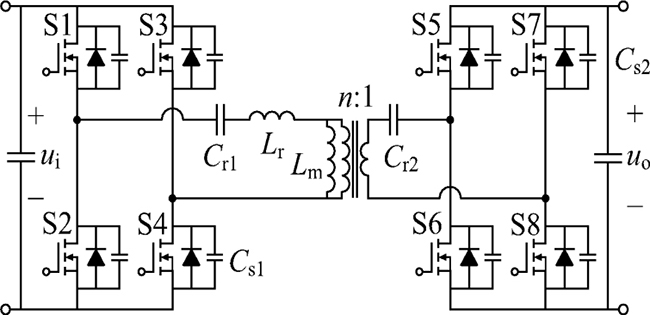 CLLC(电容-电感-电感-电容)谐振变换器(图1)是近年来受到广泛关注的一种直流-直流电力电子变换器,其利用电感与电容之间的谐振现象,实现电力电子开关器件的零电压开通和关断,从而显著提高电力电子变换器的效率。同时,通过调整谐振变换器中高频变压器的匝数比,它可以实现较高的输入/输出电压变比。