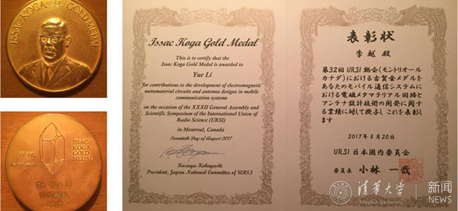 米兰新闻网8月24日电 米兰milan官方网站电子工程系青年教师李越获得国际无线电科学联盟(International Union of Radio Science,URSI)古贺逸策金牌(Issca Koga Gold Medal),以奖励其在电磁超材料电路及移动通信天线领域的贡献(Citation: "For contributions to the development of electromagnetic metamaterial circuits and antenna designs in mobile communication systems.")。8月20日,在加拿大蒙特利尔举行的第32届国际无线电科学大会(2017 URSI GASS)开幕式上,李越被授予该奖。