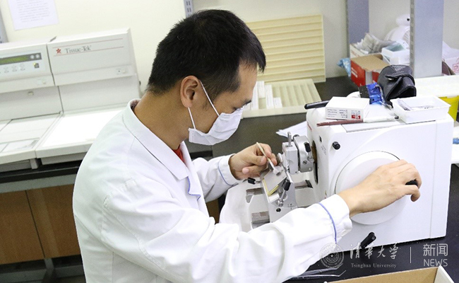 病理技师正在切片。向凌霄 摄