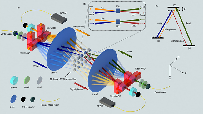 原子量子存储器阵列实验装置示意图。