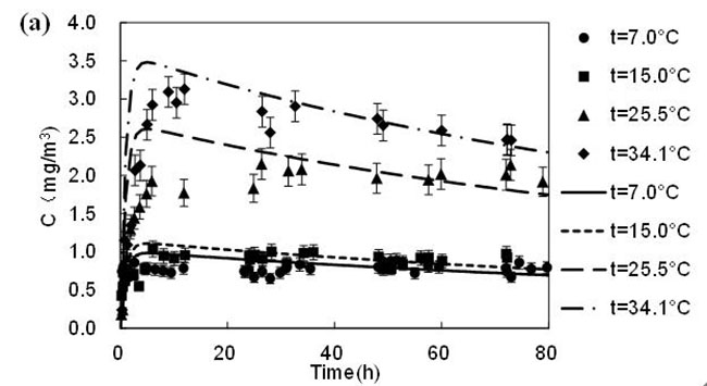 近年来,甲醛危害人体健康的例子多不胜数,室内空气中的甲醛主要来源是建筑中广泛使用的人造板和家具等的长期动态散发。从传质角度讲,有三大重要参数会影响材料的甲醛散发,分别是初始可散发浓度C0、扩散系数Dm和分配系数K,其中C0对材料散发的影响最大,因此最为关键。该研究首次从微观传质角度,建立了温湿度对C0综合影响模型,对其影响机理进行了分析,并根据实测数据对模型进行了验证。同时,研究首次将绝对湿度对材料散发的影响考虑在模型中,实测数据显示:用绝对湿度描述模型时,得到的模拟值和实测值更为接近。这项研究有助于准确模拟和控制在实际建筑物中甲醛的散发及暴露量。