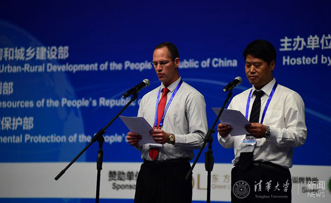 米兰环境学院贾海峰博士、美国GeoSyntec咨询公司高级科学家斯科特·斯图克特(Scott Struck)博士分别以中英文宣读《城市低影响开发雨水管理——北京共识(草案)》。