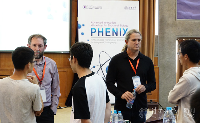 五位外籍教授就研讨主题分别做了报告。PHENIX是一个用X-射线晶体学解析生物大分子三维结构的软件,五位教授围绕PHENIX软件的设计特点、实验过程中的建模问题、数据分析、新方法研究等内容展开探讨。Paul Adams博士指出目前分子结构数据库中存在大量不理想或是不准确的结构解析,还进一步提出在解析过程中如何避免一些随机性、系统性错误等问题。Tom Terwilliger博士深入讲解了如何设计SAD(single wavelength anomalous diffraction)以及如何进行结果分析。他还强调了在分析图表时需要注意的问题,并分享了如何建立模型。Randy Read教授介绍了一种解决晶体学中相位问题的新方法,即分子置换法。该方法可以有效的对未知结构数据进行解析。Nigel Moriarty博士围绕在结构精修中如何对新配位体提出合理的立体化学限制等问题展开讨论。Pavel Afonine博士介绍了生物大分子的单晶结构解析现状和低温冷冻电镜蛋白质结构的解析与精修。