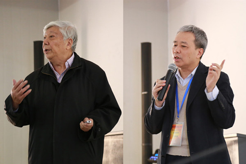 过增元院士(左)和刘建明老师(右)作报告 许然 摄