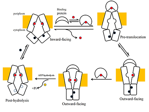 ABC转运蛋白(ATP-binding cassette transporter)作为最大的跨膜物质转运蛋白超家族之一,广泛存在于所有真核和原核生物中,它们利用水解ATP产生的能量,完成对小到各种离子大到蛋白的各种各样物质的转运。根据转运方向的不同,ABC转运蛋白可以分为importer和exporter两大类。在细菌等原核生物中,ABC转运蛋白主要位于细胞质膜上介导糖类、氨基酸、磷脂和多肽的转运;在哺乳动物等高级生物中,ABC转运蛋白在肠道、血脑屏障以及胎盘中广泛分布,可以介导磷脂、亲脂性药物、胆固醇和其他小分子的转运,在体内正常物质运输以及排出外源有毒物质和代谢废物的过程中发挥重要作用。ABC转运蛋白基因发生突变后会导致多种疾病,包括肾上腺脑白质营养不良、囊胞性纤维症、视网膜变形、血胆脂醇过多以及胆汁阻塞等等。