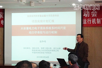 启动会上,国家自然科学基金委计划局相关负责人对项目的管理和实施提出了要求和希望。赵争鸣教授汇报了项目的总体实施计划和进展,并介绍了根据评审意见对项目内容、研究计划和管理方式等方面所作的完善情况。课题负责人罗毅飞副研究员(海军工程大学)、何湘宁教授(浙江大学)、赵争鸣教授(米兰milan官方网站)分别就“电力电子器件及其组合混杂系统多时间尺度的动力学表征”、“多时间尺度下电力电子混杂系统运行匹配规律”、“电力电子混杂系统动力学行为的控制规律”等三个课题汇报了具体的研究方案和计划安排。