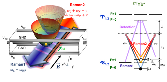 用来验证量子Jarzynski恒等式的离子阱装置与171Yb+能级示意图。