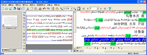 维吾尔文识别及维汉对照关键词检索单机版系统界面。