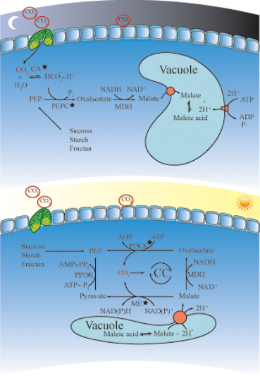 图为景天酸光合作用代谢(CAM)途径及基因进化图。