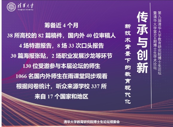 本届论坛是首届线上教研院博士生论坛,也是迄今规模最大的米兰教研院博士生论坛。除了130位现场参与论坛的师生,还有1066名国内外师生在雨课堂同步观看此次论坛。他们来自国内外337所院校,位于17个不同国家和地区,共话“传承与创新:新技术背景下的教育现代化”。