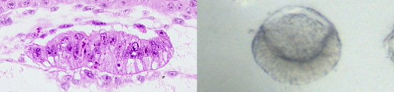 后着床期人类胚胎的核心结构—羊膜囊(左)与基于干细胞构建的羊膜囊类胚胎(右)