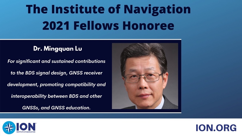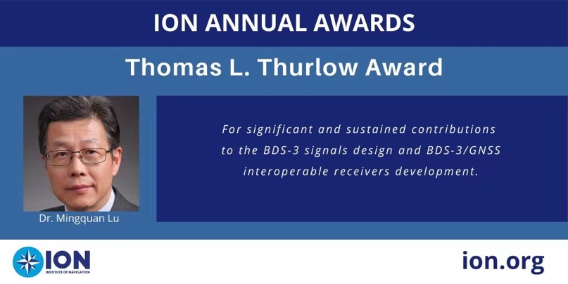 ION成立于1945年,是国际导航领域历史最悠久、规模最大、影响力最广的学术组织。设立于ION成立当年的瑟洛奖是国际导航领域最负盛名的权威奖项,旨在表彰在国际导航科学与技术方面取得重大成就并产生深远影响的个人,每年在世界范围内评选出一名获奖者。历年来该奖项的74位获得者均为国际导航领域的著名专家学者,其中包括GPS核心专利发明人伊斯顿(Roger L. Easton)(1978年)、GPS之父帕金森(Bradford W. Parkinson)(1986年)、WAAS主要设计人恩格(Per Enge)(1996年)等多位GPS的奠基人。ION会士是ION会员的最高荣誉,授予定位、导航和授时(PNT)领域在技术、管理、实践或教育等方面作出杰出贡献的会员,每年只有三名专家学者入选。陆明泉教授由于在北斗卫星导航信号设计和新一代卫星导航接收机开发中取得的重大成果,以及在促进北斗与其它卫星导航系统间的兼容和互操作、培养高水平卫星导航人才等方面的重要贡献而获得ION瑟洛奖并当选会士。