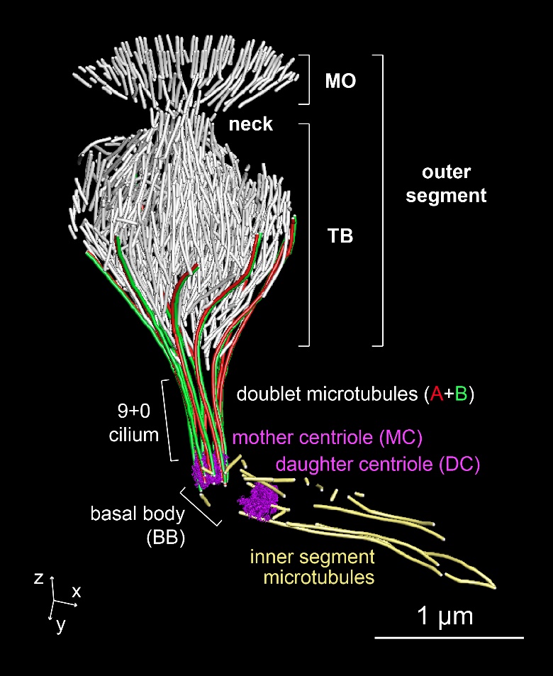 图1.力感受神经元中特化纤毛内基于微管的细胞骨架三维结构