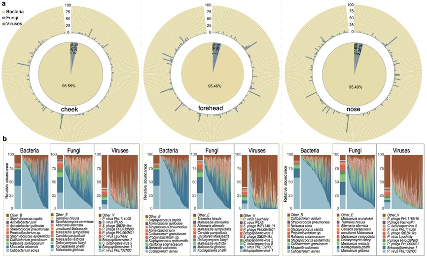 皮肤被认为是一个复杂的“生态系统”,栖息着各种各样的细菌、真菌和病毒。这些微生物的集合被称为皮肤微生物组或皮肤菌群(skin microbiota),对于维持宿主皮肤稳态和正常皮肤屏障功能有重要作用,菌群失调可引起一系列皮肤疾病。此前的皮肤菌群研究主要集中在欧美高加索人群,针对亚洲人群的皮肤菌群研究仍较少,尤其缺乏宏基因组学研究。