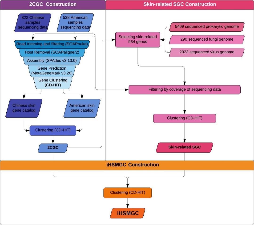 人皮肤微生物组基因集(iHSMGC)构建流程图