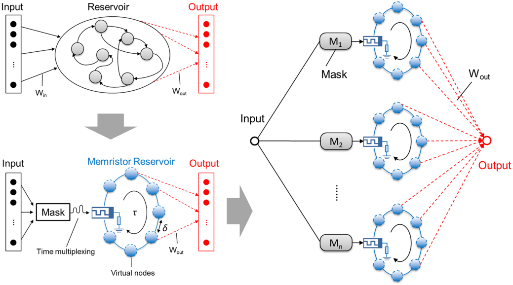 基于动态忆阻器的并行储备池计算系统示意图
