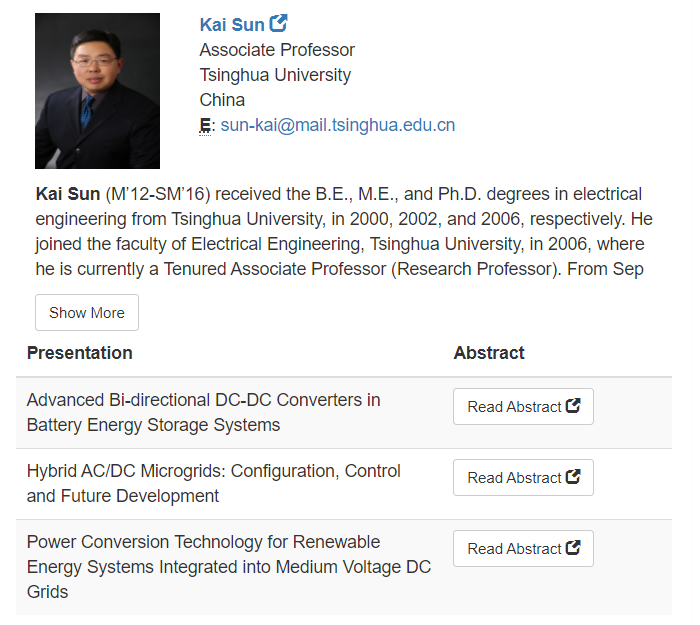 孙凯,米兰milan官方网站电机系长聘副教授、博士生导师、系主任助理、电力电子与电机系统研究所所长。主要研究方向为新能源系统和多能微电网中的电力电子技术。出版专著3部,发表论文300余篇,其中IEEE/IET期刊论文70余篇。2013年获中达青年学者奖,2017年获中国电源学会科学技术奖青年奖,2019年当选IET Fellow。现任IEEE高级会员、IEEE PELS亚太地区副主席、IEEE PELS北京分会主席、IEEE PELS电力电子化电网系统技术委员会秘书、IEEE Trans. Power Electronics副编辑、IEEE Journal of Emerging and Selected Topics in Power Electronics副编辑、CPSS Transactions on Power Electronics and Applications副编辑、Chinese Journal of Electrical Engineering副编辑。曾任IEEE ECCE2020大会公共宣传主席、IEEE eGrid2019组织委员会主席、IEEE ECCE2017技术程序委员会副主席、2018IEEE国际未来能源挑战赛(IFEC2018)共同主席。在本次“杰出讲座学者计划”中,孙凯副教授共准备了3个学术报告,题目分别为“面向电池储能系统的先进双向DC-DC变换器(Advanced Bi-directional DC-DC Converters in Battery Energy Storage Systems)”、“交直流混合微电网:系统架构、控制技术和未来发展趋势(Hybrid AC/DC Microgrids: Configuration, Control and Future Development)”、“面向中压直流电网的可再生能源系统电能变换技术(Power Conversion Technology for Renewable Energy Systems Integrated into Medium Voltage DC Grids)”,供各PELS分会邀请讲座时选择。