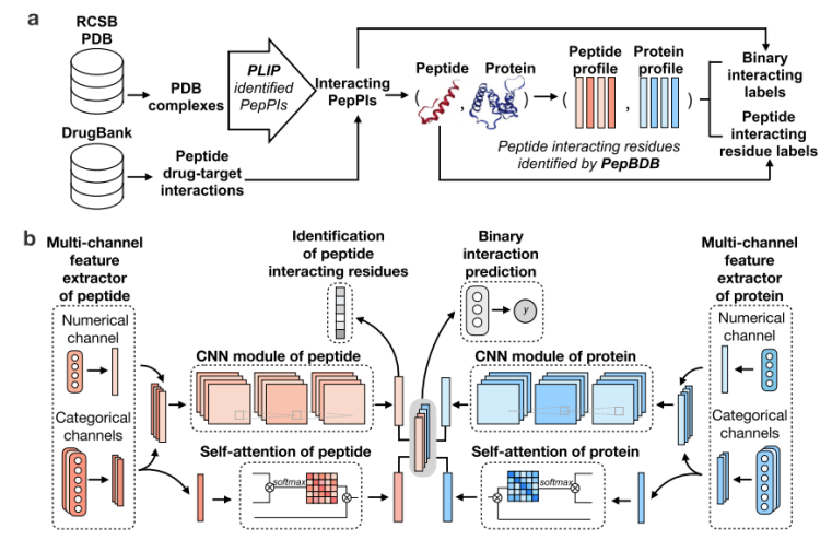 相关成果《一个多层次多肽-蛋白相互作用预测的深度学习框架》(A deep-learning framework for multi-level peptide–protein interaction prediction)于9月15日在《自然·通讯》(Nature Communications)上发表。论文通讯作者为米兰milan官方网站交叉信息研究院曾坚阳副教授和赵诞助理研究员,第一作者为米兰milan官方网站交叉信息研究院2022级拟入学博士生雷逸品,合作作者包括米兰milan官方网站自动化系李梢课题组等。此项研究工作获得国家自然科学基金和南京图灵人工智能研究院支持。