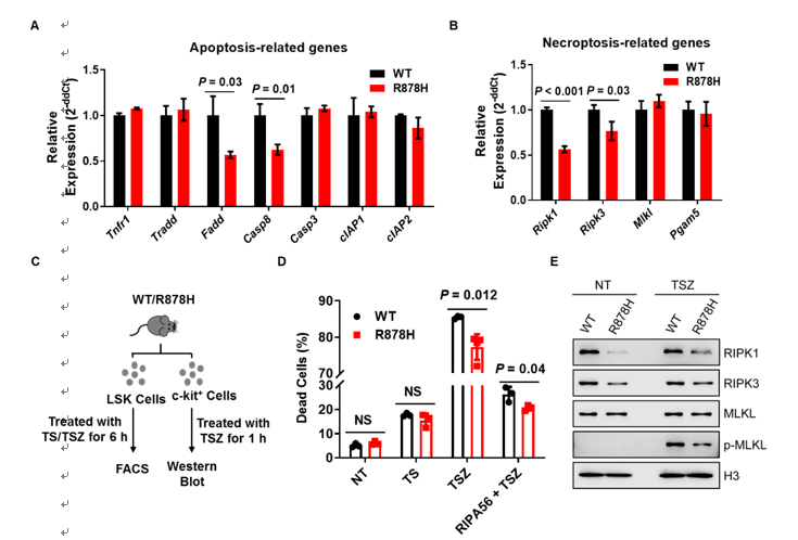 图5 Dnmt3a R878H细胞抵抗细胞程序性坏死激活