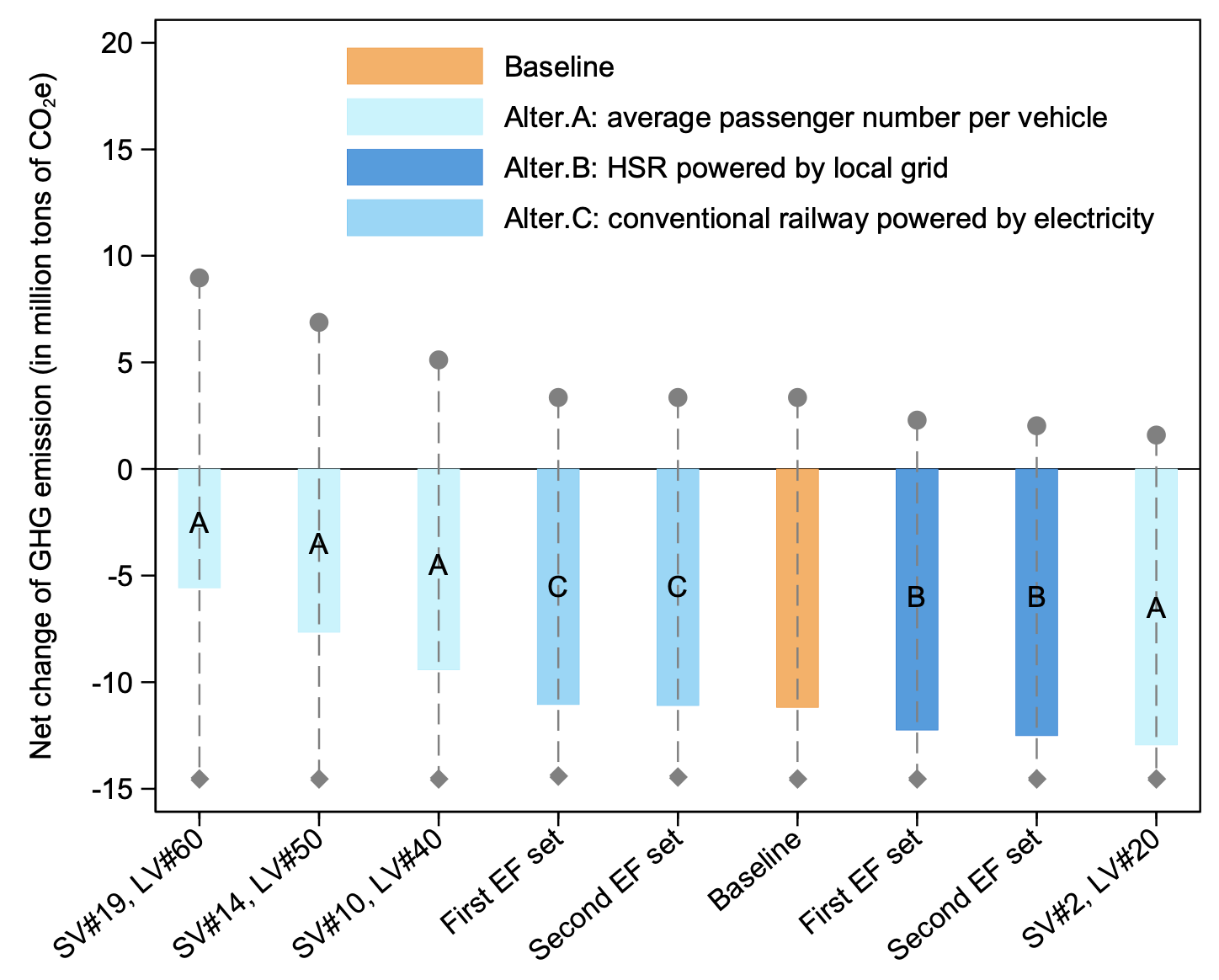 米兰milan官方网站建设管理系长聘副教授吴璟等运用中国国家交通监测数据和统计学量化研究方法,发现中国高铁网络的迅速发展使得公路客运和货运的运输量显著降低,从而每年减少相当于1118万吨二氧化碳的温室气体排放量,这个数字相当于2016年中国交通运输行业温室气体总排放量的1.33%。减排的实现主要是因为货物运输从公路转向传统铁路,而这是由于旅客从传统铁路改乘高铁、高铁网络释放传统铁路的运输能力所导致的。对公路交通的替代效应是高铁对温室气体减排整体贡献的主要来源。进一步研究发现,中国高铁的环境效益尚未充分实现,这主要受制于中国火电为主的发电结构。在“双碳目标”背景下,研究预测表明随着未来中国发电结构中清洁能源占比的提升,高铁的减排效应还将大幅增强。