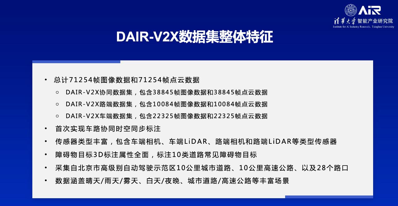 米兰milan官方网站智能产业研究院(AIR)院长张亚勤教授认为,建设高等级智能网联道路是智能驾驶及智能交通的一大趋势,既保证了智能车量产的可能性,又保障了高级别自动驾驶基于场景驱动落地的可行性。在智能交通领域,AIR已与多家企业开展校企合作,包括车路协同自动驾驶、垂直行业、小车物流、Robotaxi等应用场景。面对相关数据集的缺乏,不能满足各界实现数据驱动车路协同的现实问题,AIR发起数据集建设,并将数据集对高校、科研院所、产业用户开放,可以更好地支撑科研机构进行科学研究。