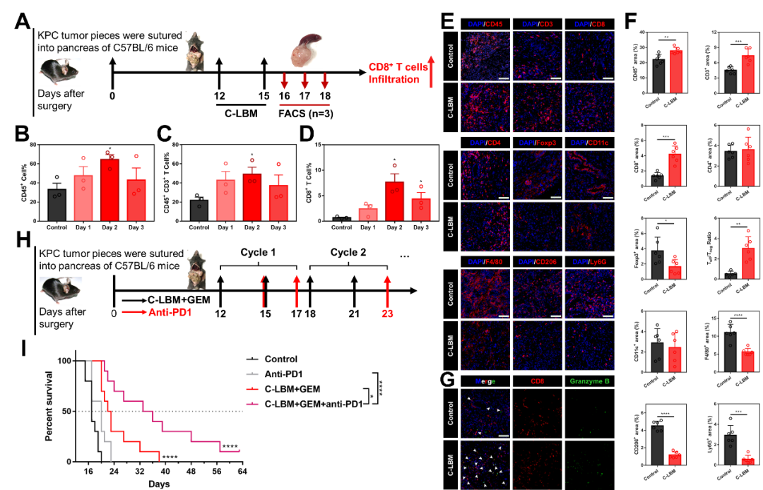图6. C-LBM改变了免疫抑制性微环境并提高了PDAC对免疫疗法响应性