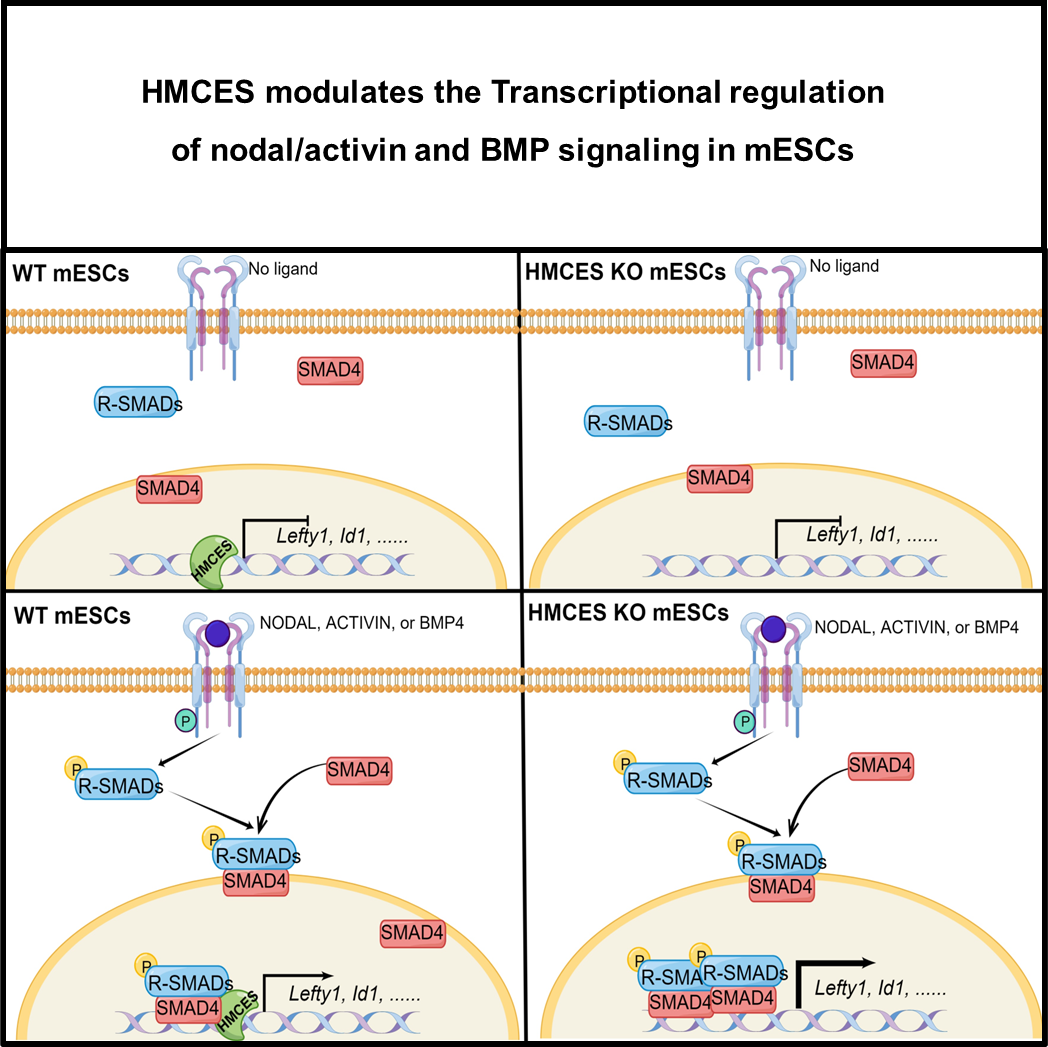 图1. HMCES与SMAD蛋白特异结合,通过空间位阻方式阻滞TGF-β/BMP信号通路直接靶基因的转录过度激活
