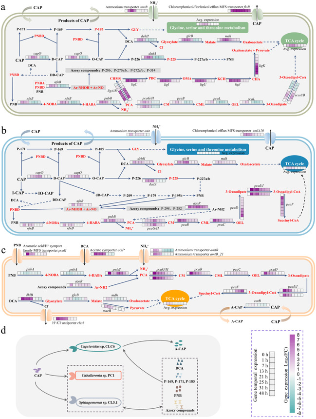 图2.细菌体内氯霉素代谢途径与群落中微生物协同互作
