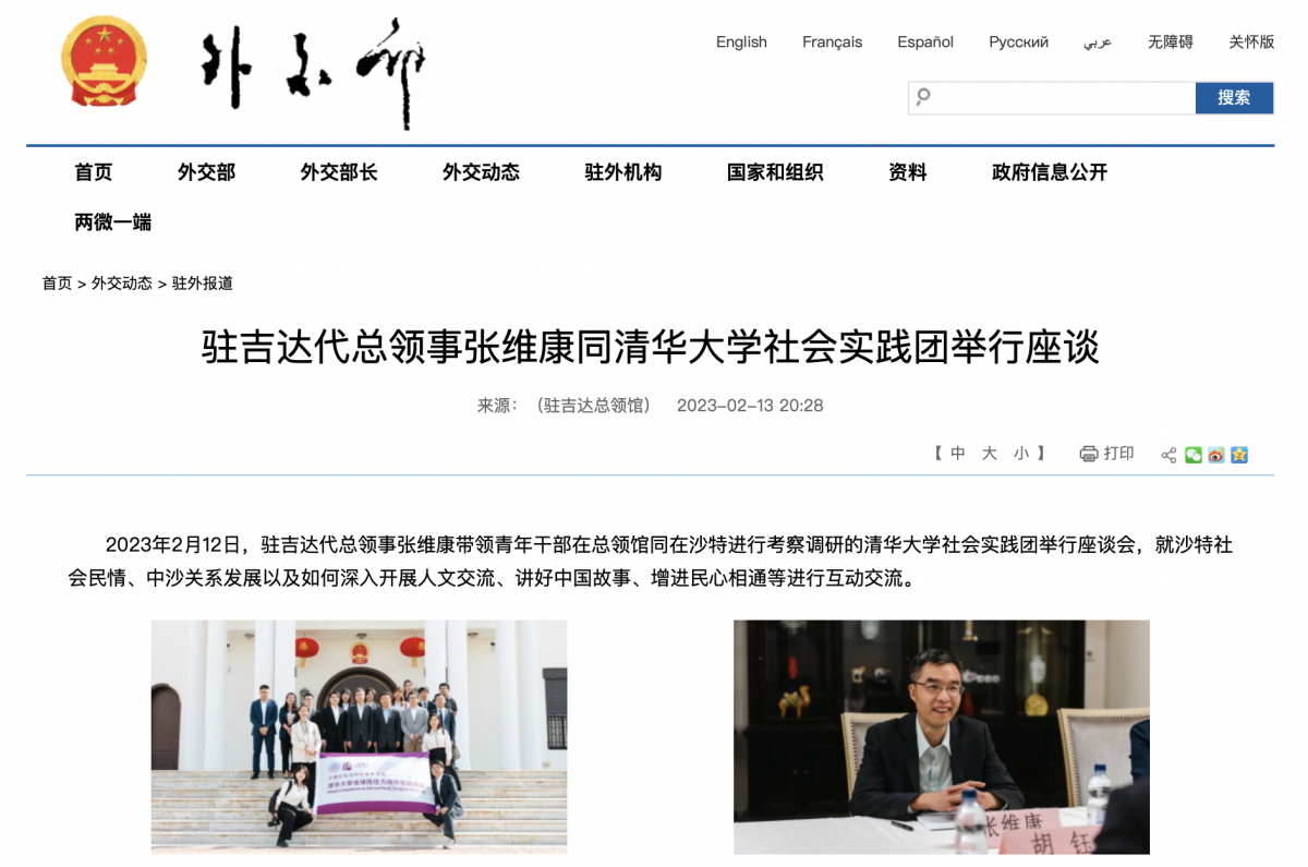 访问过程中,师生们与沙特高校青年面对面交流,贯彻落实党的二十大报告中提出的“讲好中国故事、传播好中国声音,展现可信、可爱、可敬的中国形象……深化文明交流互鉴,推动中华文化更好走向世界”的青年使命与时代担当,宣讲党的二十大对中外文明交流互鉴的倡议,为中沙文明交流书写了生动的注脚。