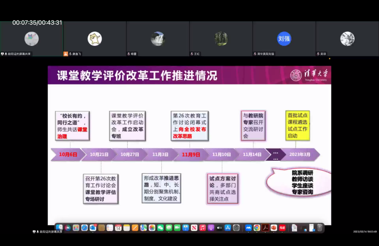 欧阳证首先介绍了改革工作整体实施方案。在第26次教育工作讨论会期间,学校成立专班推动课堂教学评价改革专项工作,将“权威—理性—实用—经验—审美”五种认识论标准迁移到课堂评价中,基于课堂与教学论,从课堂的前提、设计、任务、经历和情绪五个维度,分析研究全过程课堂教学评估要素,提出机制—制度—文化三个层面的改革举措,不断完善课堂治理。希望通过优化过程性反馈凸显评价的发展性,强化课堂教学的即时提升,进而完善教评和人事考核的关系,实现晋升考核让位与过程提升的良性循环,最终建立米兰特色教评文化。