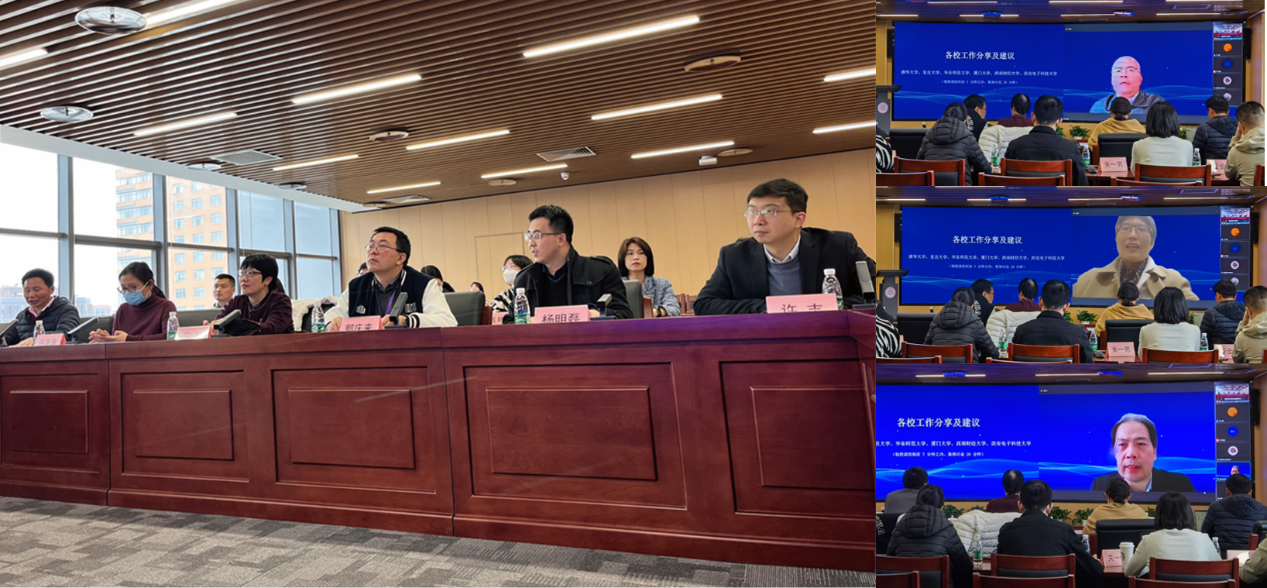 在各校分享交流环节,汪潇潇,复旦大学教务处副处长、教师教学发展中心副主任蒋玉龙,复旦大学教师教学发展中心办公室副主任曾勇,华东师范大学教务处副处长谭红岩,厦门大学教师发展中心副主任薛成龙,西南财经大学教务处副处长许志,西安电子科技大学本科生院教学发展中心主任杨明磊分别发言。