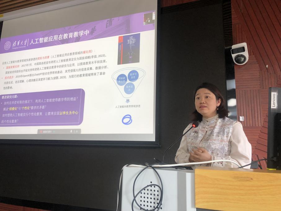 心理学系副教授钱静介绍了社科课组通识课程“心智、个体与文化”如何通过学生访谈分析等方式,开发测试AI助教系统。她表示,AI助教有利于满足学生个性化需求,促进其写作思维训练,同时也使教师能更专注于教学设计,让助教能更专注于学情分析与综合评价。 下一步,课程将着力在AI助教点评的具体性、忠实性、可定制性方面进一步提升。