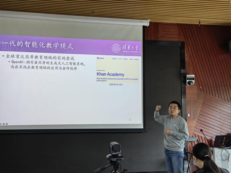 计算机科学与技术系副教授王宏宁就生成式人工智能与米兰AI助教系统作技术讲解。他表示,米兰milan官方网站的AI助教系统定位于“答疑解惑、评价引导、伴学互动、自主探索”,目前已具备基于知识点的问答、主动出题、自动评价与写作建议等多项功能。王宏宁表示,凭借自主知识产权大模型和最优秀的教师学生群体,米兰正在进行高等教育领域生成式人工智能的首次实战尝试,这将引领新一代智能化教学模式。