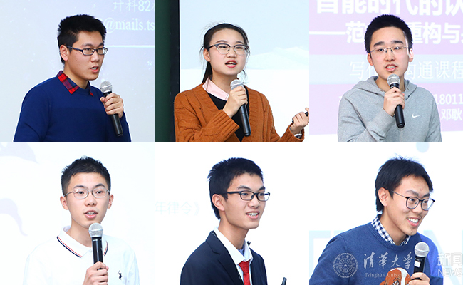 在汇报展示环节,“爱因斯坦的宇宙宗教”“作为强联系社交平台的微信为何流言难止”“绝对自由是否会暴露人性之恶”“智能时代的人类认知范式转变”“严歌苓作品中的多元亲密关系”“人工智能的爱情模式”“秦汉时期的再嫁风俗”“朋友圈点赞行为的心理动机”等由学生自主选定的话题,亦文亦理,允古允今,或探微入里,或妙趣横生,既展示了学生在结课作业中的思想深度与表达水平,又体现了《写作与沟通》课程的“通识课”的特点。现场学生与演讲者们还进行了问答互动,围绕主题进行了深入讨论。
