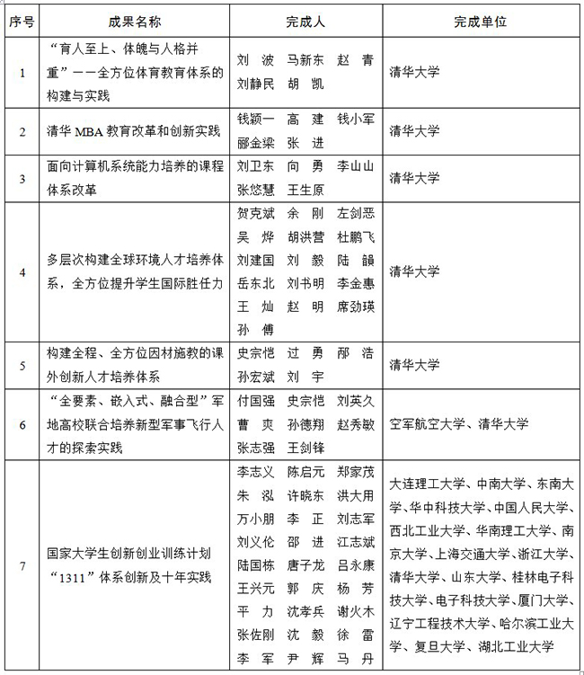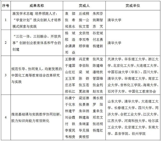 国家级教学成果奖每四年评选一次,本次国家级教学成果奖分为基教、职教、高教三类共1355项成果获奖。其中高教类特等奖2项。一等奖50项,二等奖400项。
