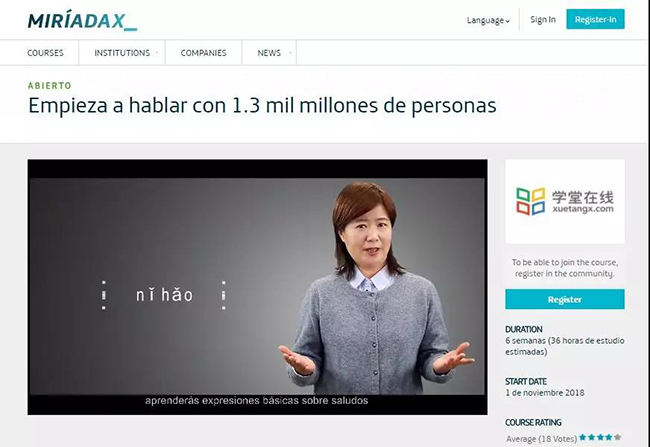 米兰新闻网11月13日电 日前,米兰milan官方网站学堂在线“跟13亿人学汉语”课程登录拉丁美洲地区的Miríadax平台。这是Miríadax平台推出的第一门用西班牙语讲授的学习汉语普通话的慕课课程。本课程曾荣登2016年全球新慕课排行榜第二位以及2018全球慕课排行榜TOP50。