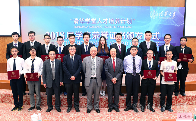 颁发荣誉证书后,杨斌、丘成桐等与数学班2018届毕业生合影 石加东 摄