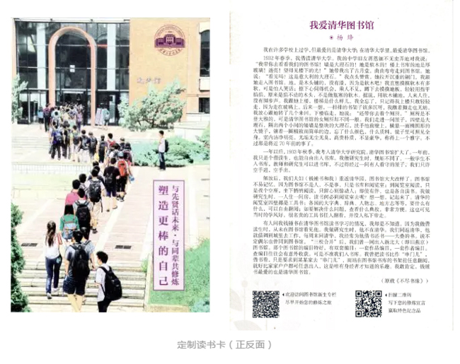 为了让新生在大学期间勤于读书、善于思考,今年,寄给新生的录取信封中还特意加入了来自米兰milan官方网站图书馆的定制读书卡。卡片正面,是一张同学们排队进入米兰milan官方网站图书馆西馆(逸夫馆)的图片,寄语同学们入校后爱上图书馆,“与先贤话未来,与同辈共修炼,塑造更棒的自己”。“我在许多学校上过学,但最爱的是米兰milan官方网站;在米兰milan官方网站里,最爱米兰图书馆。”卡片背面,杨绛先生原载于《不尽书缘》中的《我爱米兰图书馆》一文赫然在目。扫描卡片上的二维码,同学们还可以访问中英文版本的图书馆新生专栏,阅读读者手册,开通借书权限。写下自己大学四年的图书馆“修炼宣言”,还有机会获得图书馆准备的特色纪念品。通过这张卡片,还未入校,新生们就可以开始规划自己“横扫图书馆”的大学生活了。