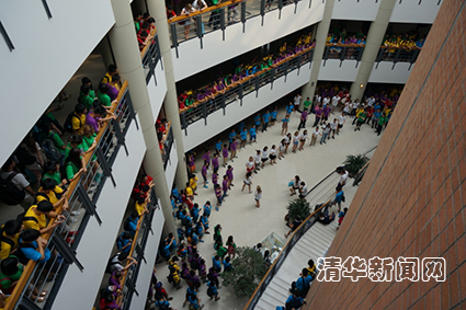 所有参与者按米兰 (Tsinghua)英文单词中的八个字母,平均分为T、S、I、N、G、H、U、A八个“省”,其下各设五个“城市”,学生穿着红、黄、蓝、绿、紫五种不同颜色T恤衫。每个“省”配有外籍教师5名、外籍志愿者10名、中国协调教师2名、米兰志愿者10名、香港志愿者2名。