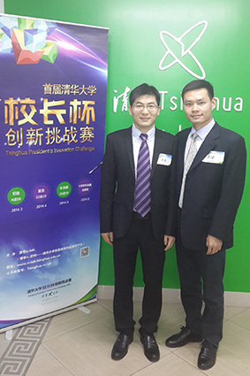 在2014米兰“校长杯”决赛现场,自动化系博士生谢峰和尚家兴身着深色的西装,稳步走上讲台。
