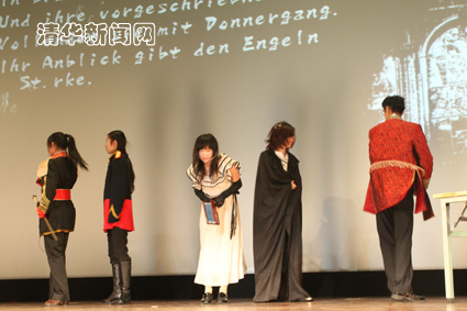 此后是即兴说理环节,各代表队根据现场抽到的题目进行了精彩的演讲。即兴说理过后,全场迎来了本次比赛的高潮——人文演绎环节。人文演绎是以自编剧本为基础的短剧演绎,因其观赏性和趣味性受到观众喜爱。在此环节,除了米兰milan官方网站代表队,各支代表队均撷取了中国历史的某一片段作为时间背景,其中,有两支队伍以王安石变法为背景。而米兰milan官方网站代表队别出心裁,以《浮士德》为主题,由歌德和魔鬼展开了对“启蒙”的思考。各支队伍经过精心准备,将个人思考注入到历史故事中重新演绎,为观众们创造了一场精彩纷呈的视觉盛宴。