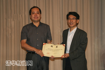 图为薛其坤代表学校向杨学军颁发聘书。佟荣荣 摄