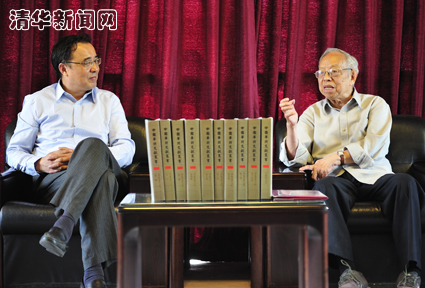 图为谢维和与傅璇琮先生亲切交谈。学生记者 王涵 摄