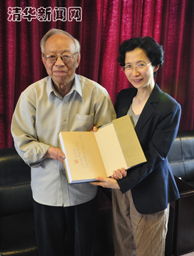 图为向阳(右)为傅璇琮先生(左)颁发证书。学生记者 王涵 摄