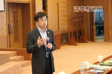 图为陈鸣明介绍贵州省的最新发展情况和用人政策。