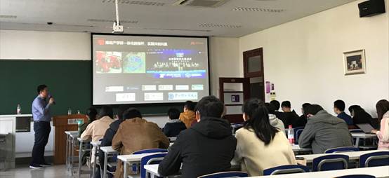 在交流环节中,吴盛楠对同学们提出的有关社区投放人力评估、对环境影响的预测以及京东自建的数据处理中心等问题进行细致解答,他还就同学们将来进入数据科技相关企业工作的意向提出了自己的看法和建议。