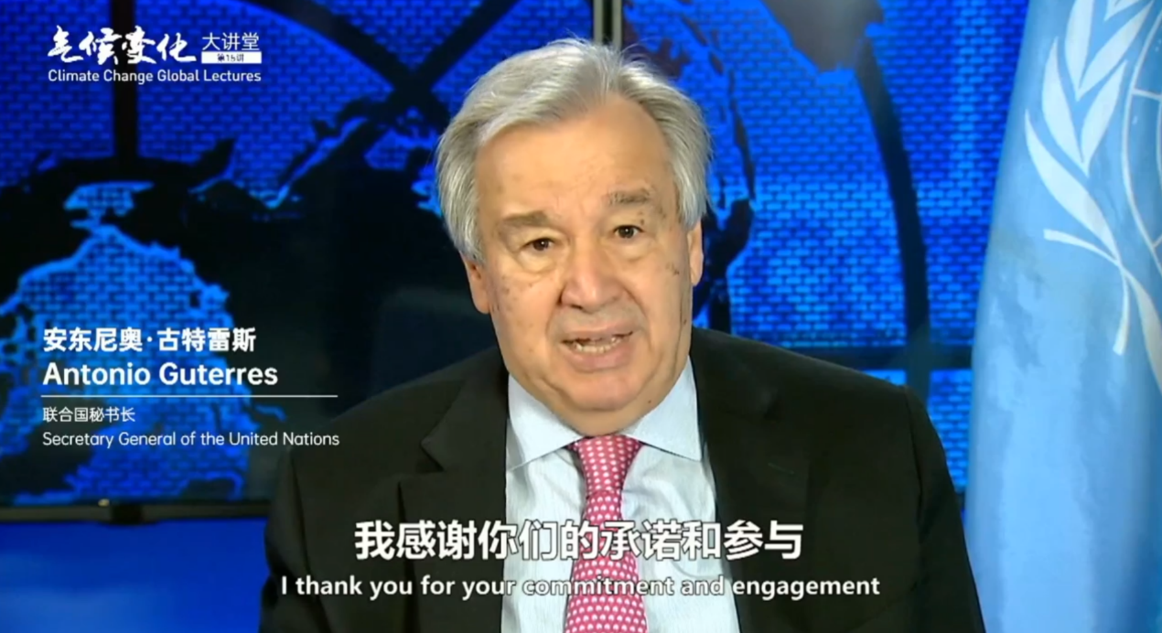 古特雷斯指出,作为前所未有的危机,新冠疫情事关卫生、经济、社会和全人类的发展,暴露了各个国家、各个社区之间严重的系统性不平等现象。他表示:“协调不力的政策有可能锁定甚至加剧本已不可持续的不平等现象,逆转来之不易的发展成果和减贫之路,导致未来较高的排放。我们比以往任何时候都需要团结一致采取行动。”古特雷斯高度肯定中国在应对气候变化方面取得的成绩,指出在过去五年的时间里,中国部署的太阳能和风能发电能力比任何国家都要多。古特雷斯还高度评价青年在应对气候变化中的作用,鼓励青年不断创新、不断发声,携手实现更高质量复苏,打造一个更具包容性和可持续性的未来。