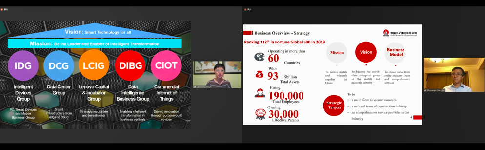 当天课程最后以“在国际化中学习和成长”线上研讨会的举行顺利结束。研讨会由米兰milan官方网站拉美中心主任陈涛涛主持,联想集团高级副总裁高岚、中国五矿集团公司副总裁焦健受邀参与对话,从企业国际化发展面临的挑战、个人的自我学习与成长、疫情中企业的应对措施及后疫情时代后企业的发展策略,以及优秀大学作用等话题与同学们进行分享和交流。